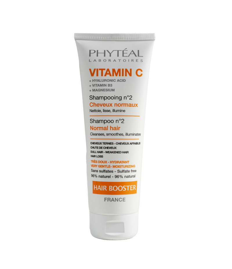 Spécialement conçu pour les cheveux normaux, ternes ou en manque de vitalité, Phytéal Vitamine C Shampooing Booster N°2 nettoie en douceur le cuir chevelu tout en révélant l’éclat naturel de la fibre capillaire.