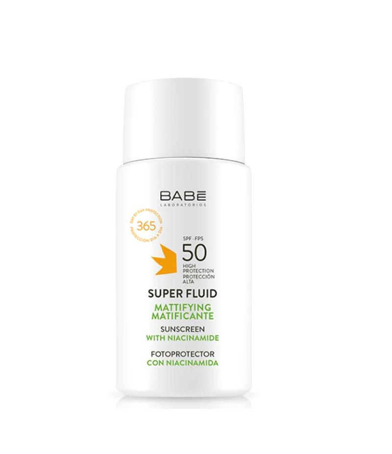 Le Super Fluid Matifiant SPF 50 de Laboratorios BABE offre une haute protection solaire quotidienne avec une texture ultra-légère et sans huile, spécialement conçue pour les peaux grasses ou à tendance acnéique. Grâce à sa formule enrichie en Niacinamide, il aide à réguler l'excès de sébum, offrant un fini mat et soyeux tout au long de la journée.