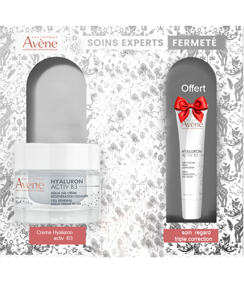Avene coffret aqua gel creme jour hyaluron activ B3 texture fraiche + soin regard triple actions offert