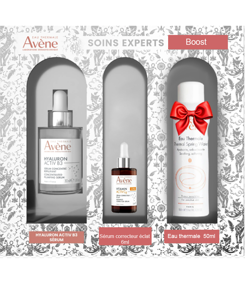le coffret contiient un sérum anti age 30ml , sérum correcteur eclat 6ml et eau thermale 50ml offerts