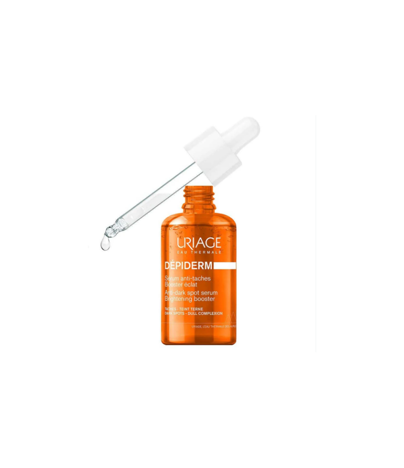 Uriage Dépiderm Sérum Anti-Taches Booster Éclaircissant 30 ml est un sérum anti-taches pour les teints ternes. Il aide à réduire visiblement les imperfections, laissant la peau unifiée et lumineuse. Il contient : L'Eau Thermale d'Uriage, qui renforce la barrière cutanée. Sa concentration unique en minéraux et oligo-éléments lui confère des propriétés hydratantes, protectrices et apaisantes, Technologie Mela : 3 ingrédients naturels qui corrigent les taches pigmentaires, vitamine C pour corriger les imperfections et donner à la peau un éclat radieux, la niacinamide, qui protège la peau des radicaux libres et préserve son éclat. Sans parfum. Non comédogène. Convient à tous les types de peau. Testé dermatologiquement. 94% d'ingrédients d'origine naturelle.