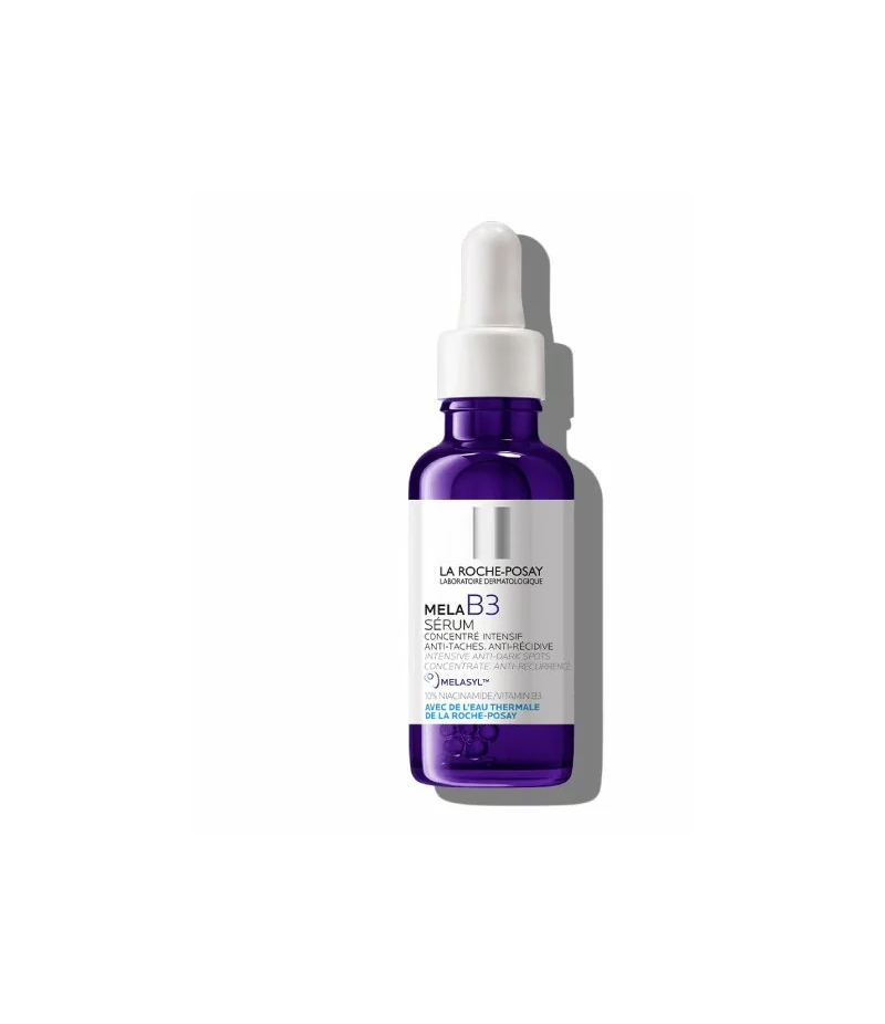 LA ROCHE POSAY MELA B3 SERUM INTENSIF ANTI TACHES 30ML LA ROCHE POSAY MELA B3 SERUM INTENSIF ANTI TACHES est le nouveau sérum anti-taches à base de Melasyl™ multibreveté et de Niacinamide concentrée à 10% pour corriger les taches brunes, même persistantes. Efficacité anti-récidive. Bénéfices : L’efficacité de ce sérum a été cliniquement prouvée : Résultats visibles dès 1 semaines 4 femmes sur 5 ont des taches persistantes corrigées 98% des femmes voient le nombre de taches diminuer après une semaine 98% des femmes voient la couleur des taches s'éclaircir après une semaine Problèmes ciblés : Taches brunes, taches de vieillesse, taches solaires, melasma, hyperpigmentation, marques post-acnéiques, teint terne et irrégulier. Type de peau : Pour tous types de peaux et toutes les carnations. Visage, cou, décolleté et mains.