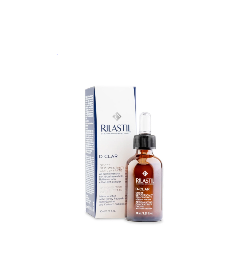 Rilastil D-Clar Concentré Dépigmentant – Gouttes Intensives Visage Le concentré dépigmentant Rilastil D-Clar est un soin intensif pour corriger, unifier et sublimer la peau du visage. Sa formule associe des actifs dépigmentants, des agents préventifs et des acides alpha-hydroxy pour agir efficacement sur toutes les formes d'hyperpigmentation tout en améliorant la texture et l’éclat du teint.