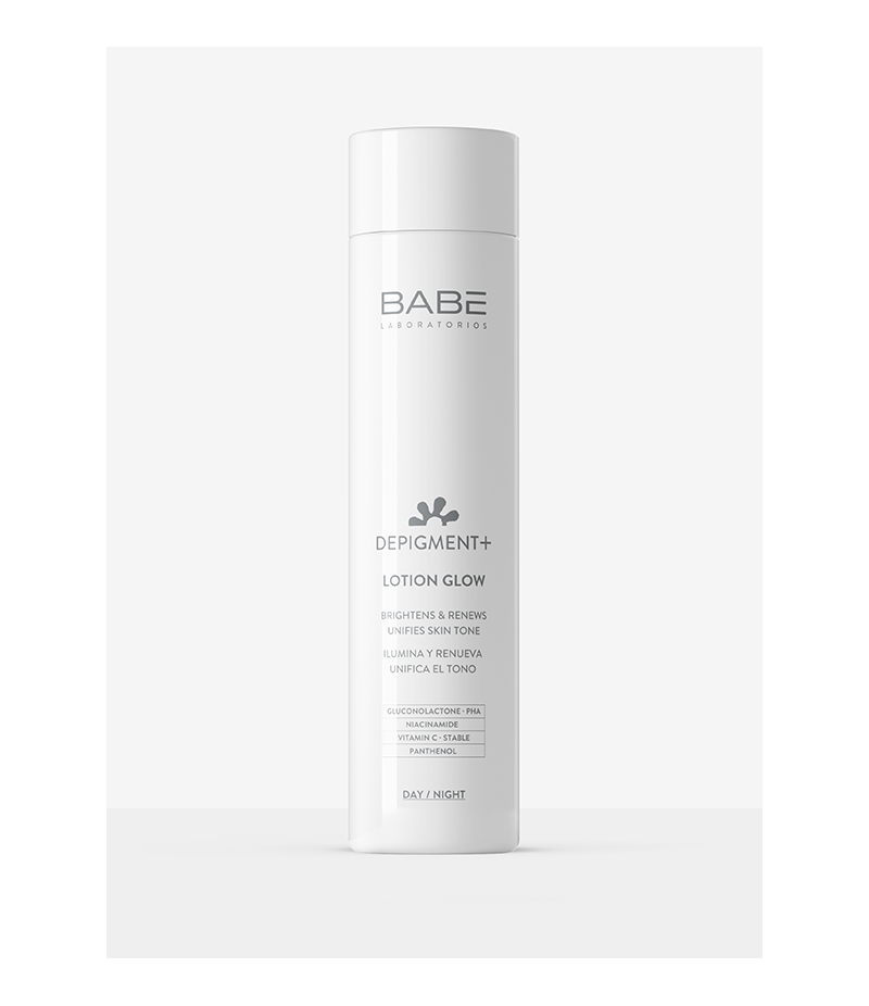La lotion Babe Depigment+ Lotion Glow est une lotion équilibrante pour la peau issue de la gamme de soins éclaircissants avancés de la marque.