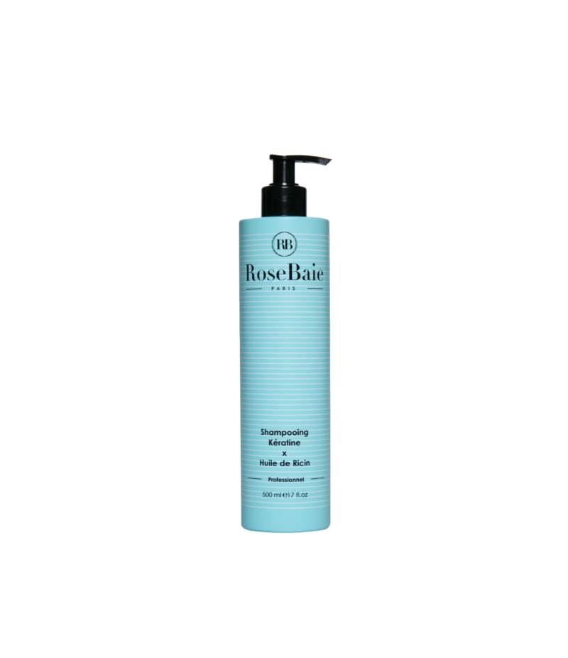 Le shampooing RoseBaie à la kératine et à l’huile de ricin élimine les impuretés, protège des agressions, répare et stimule la fibre capillaire, hydrate et discipline afin de retrouver un éclat naturel.