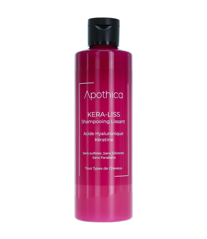 Le Shampooing Lissant "KERA-LISS" d'Apothica est formulé à base d'acide hyaluronique et de Kératine.