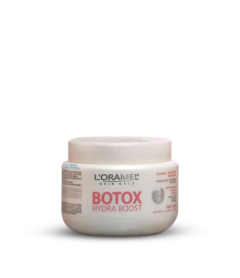 LORAMEL BOTOX HYDRA BOOST Soin capillaire profond à la kératine, collagène & caviar Hydratation Réparation Lissage Offrez une nouvelle vie à vos cheveux ! Le Botox Capillaire LORAMEL Hydra Boost est un traitement intensif conçu pour revitaliser, hydrater et lisser les cheveux abîmés ou fatigués. Sa formule concentrée en kératine, collagène et extrait de caviar offre une transformation immédiate, pour une chevelure douce, brillante et pleine de vitalité.
