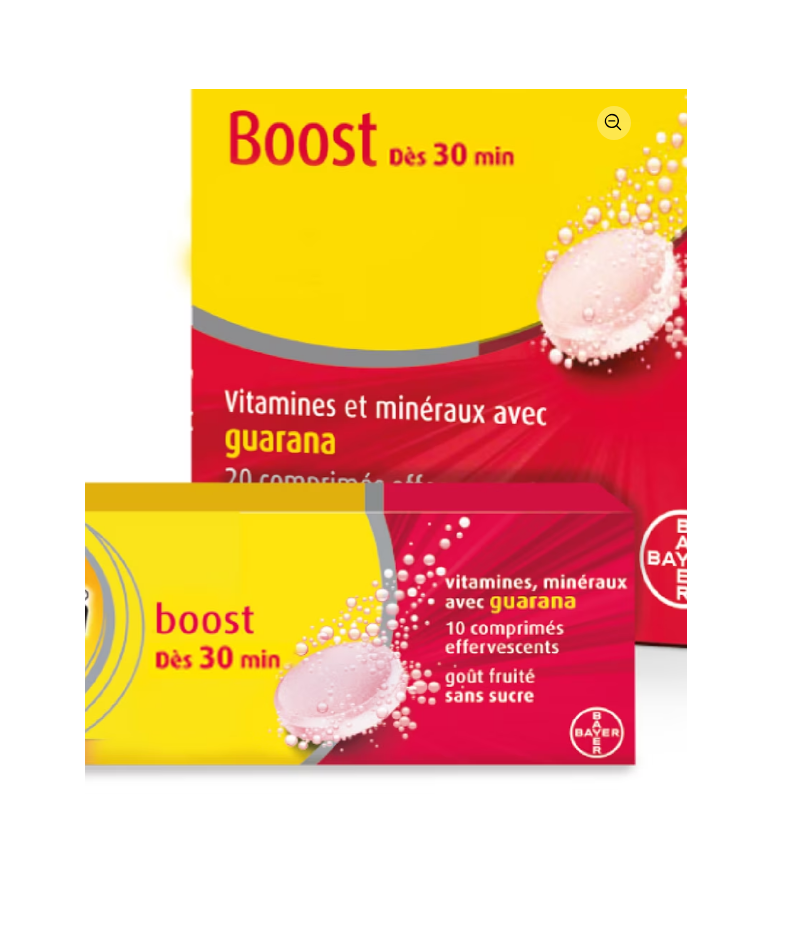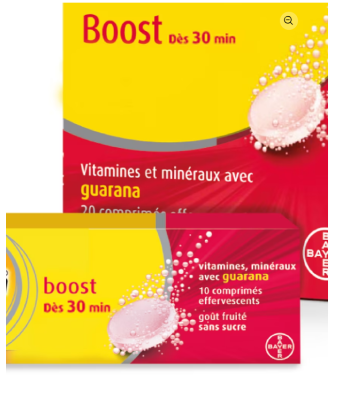 Les Supradyn® « boost » est une formule innovante contenant du guarana – un stimulant naturel rapide – associé à une combinaison de 9 Vitamines et 3 Minéraux et Oligo-éléments pour assurer le regain d’énergie et booster vos performances cognitives.  Supradyn® Boost, vous apporte le boost d’énergie qu’il vous faut pour être au top de votre forme.