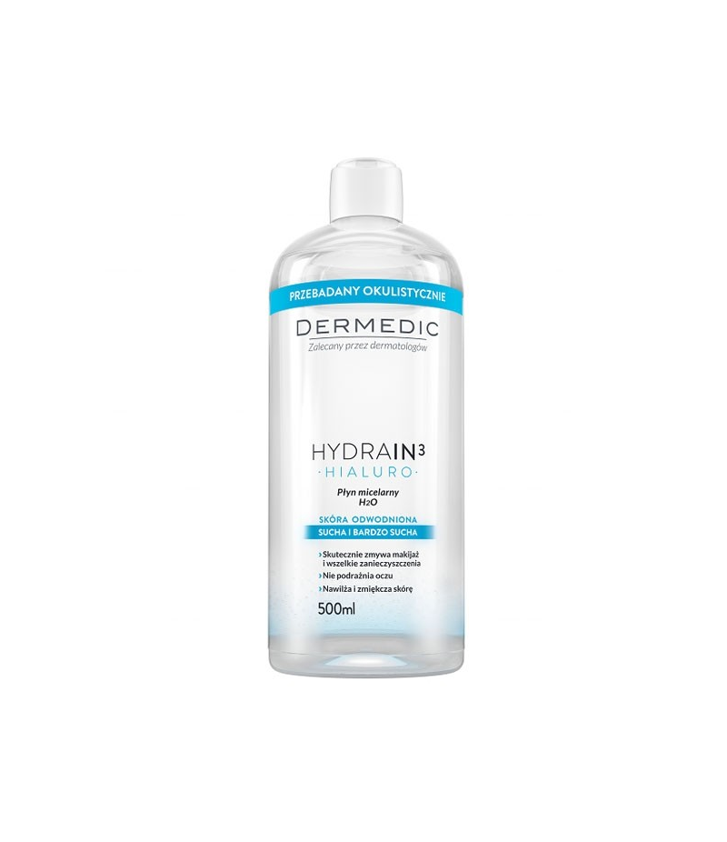 Fabriqué dans des conditions pharmaceutiques. Le produit a été testé dermatologiquement. Action Dédié au démaquillant yeux et visage pour les peaux sèches et déshydratées. Nettoie le maquillage et les impuretés, laissant une sensation de fraîcheur et de pureté - d'esters d'micelles acides gras « attirer » la pollution sans la nécessité d'une friction excessive de la peau avec un coton-tige. Ne pas irriter les yeux - hypoallergénique - propreté qui donne l'eau thermale ne cause pas d'irritation, même chez les personnes très sensibles. Il ne dessèche pas la peau comme d'autres détergents - L'acide hyaluronique - complexe d'acide hyaluronique Hydroveg VV - ramollir et à maintenir l'hydratation de la couche cornée de la peau. Il ne pas obstruer les pores. Il ne laisse pas de film sur la peau. Testé par des personnes portant des lentilles de contact. Indications Recommandées pour le nettoyage des yeux et de la peau sensibles. Aussi, pour les personnes qui ne tolèrent pas les démaquillants traditionnels : Comment humidifier légèrement le coton avec un liquide micellaire et bouger doucement le visage, le cou et le décolleté.