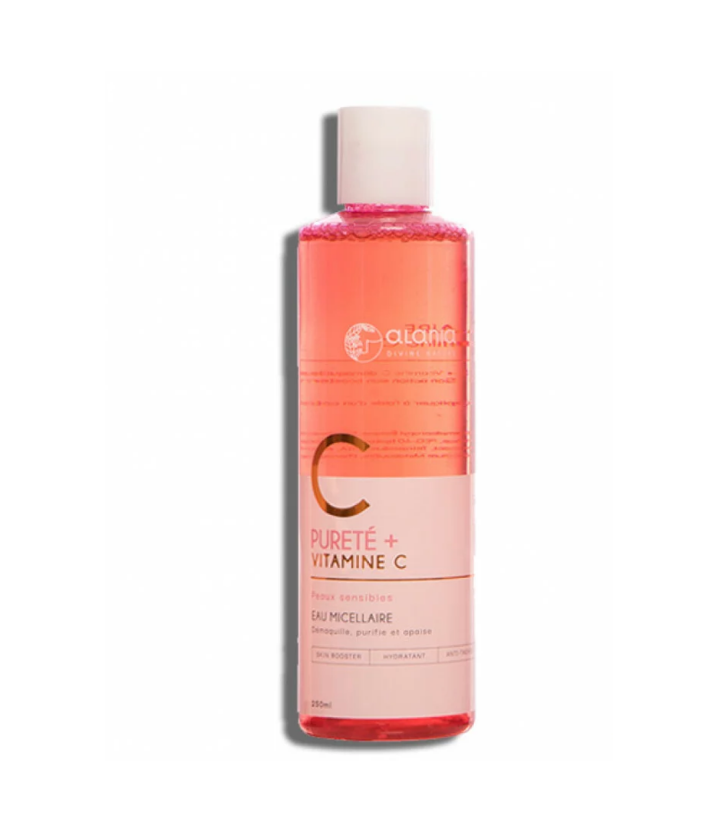 ALANIA PURETE+ VITAMINE C EAU MICELLAIRE ALANIA PURETE+ VITAMINE C EAU MICELLAIRE nettoie en douceur, apaise la peau et désincruste les impuretés pour un teint frais et net à chaque utilisation. Son action skin booster apporte pureté et fraîcheur à votre teint. ALANIA EAU MICELLAIRE est une formule purifiante sans rinçage . Elle offre une action apaisante sur la peau sensible, qui sera hydratée, éclatante et lumineuse. BIENFAITS DE ALANIA PURETE+ VITAMINE C EAU MICELLAIRE : Démaquille, purifie et apaise la peau Antioxydant, skin booster et tonifiant Eclaircissant et anti-tâches Stimule la production de collagène et hydrate