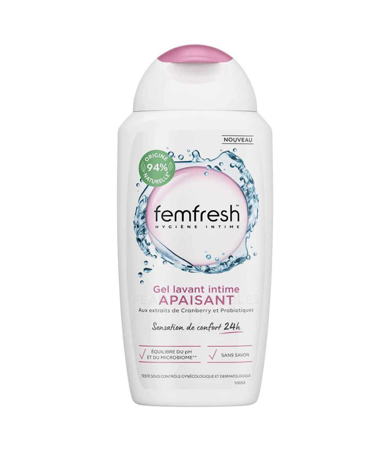 Le gel lavant intime apaisant Femfresh apporte une sensation de confort immédiat qui permet à votre zone intime de se sentir hydratée et procure une sensation d'apaisement durable pendant 24h. Contient un complexe de pré et probiotiques ainsi que des extraits de chèvrefeuille et de cranberry. Le pH de la zone intime est différent de celui du reste du corps. Les gels Femfresh sont proches du pH naturel de la zone intime pour aider à maintenir l'équilibre naturel du microbiome de la peau.