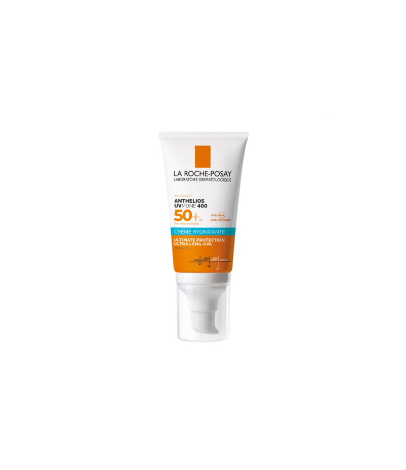 Découvrez la crème solaire La Roche-Posay Anthelios UVMune 400, une crème hydratante invisible avec un indice de protection SPF 50+.