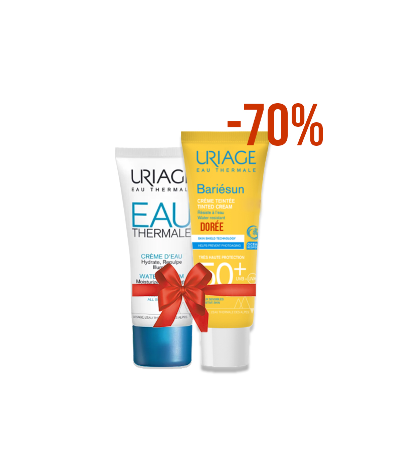 Bénéfices : Hydratation intense et durable Texture légère, non collante Convient aux peaux normales à mixtes Enrichie en Eau Thermale d’Uriage URIAGE Bariésun SPF50+ Teintée dorée Une protection solaire très haute SPF50+, teintée dorée , qui unifie le teint tout en protégeant la peau des UVA/UVB.