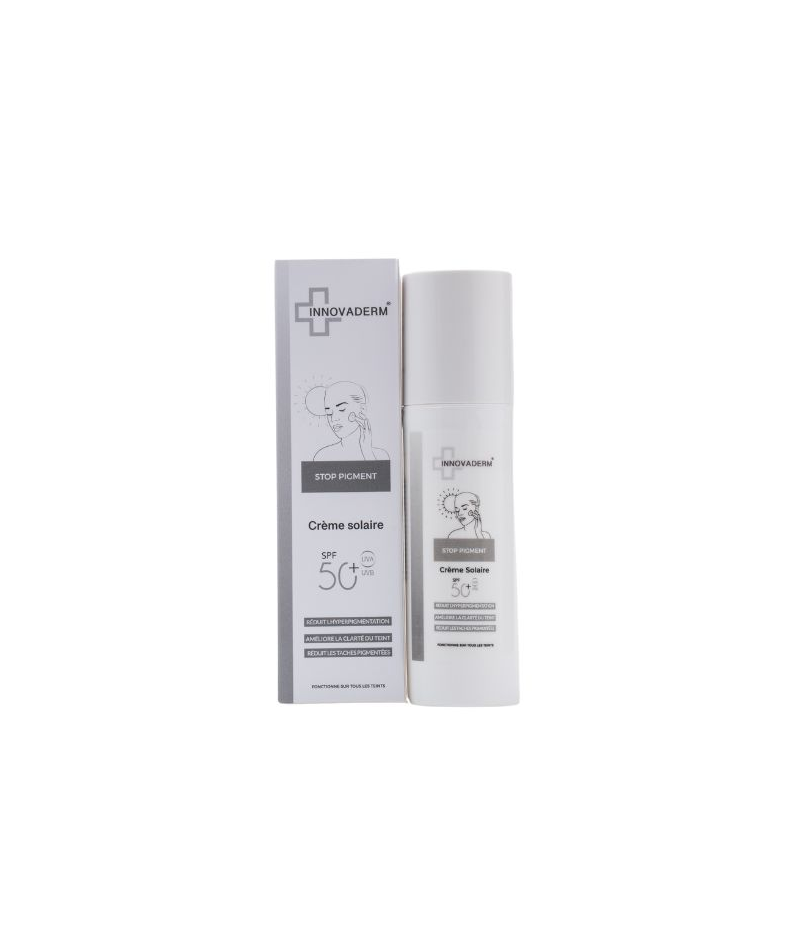 INNOVADERM STOP PIGMENT SPF50 réduit et prévient l´intensité et la taille de nouvelles tâches pigmentaires grâce à son complexe Asyntra 25%synovea HR-B3 qui agit efficacement et durablement sur les tâches pigmentées L’INNOVADERM STOP PIGMENT SPF50 est également doté d’une protection solaire SPF50, vous offrant une double action : elle prévient non seulement l’apparition de nouvelles tâches pigmentaires, mais elle protège également votre peau des rayons UV nocifs. C’est une formule complète qui prend soin de votre peau tout au long de la journée.