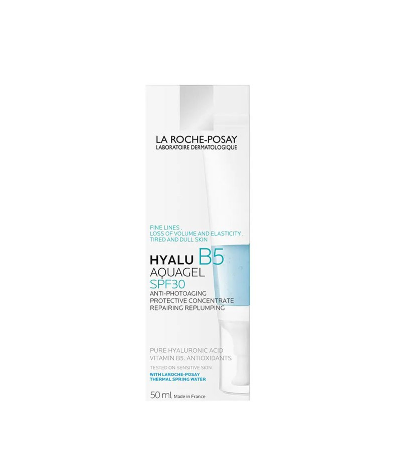 La Roche-Posay a mis au point Hyalu B5 SPF30 Aquagel, son premier soin anti-photovieillissement haute protection qui repulpe, colmate les agressions subies et prémunit la peau contre les méfaits des UV et de la pollution. Gel crème hydratant visage haute protection, réparateur et repulpant, alliant de l'acide hyaluronique pur et de la vitamine B5