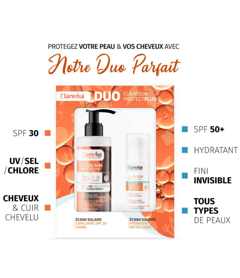 Clarenia Coffret Duo Écran Solaire hydaratant + Écran Capillaire SPF 30